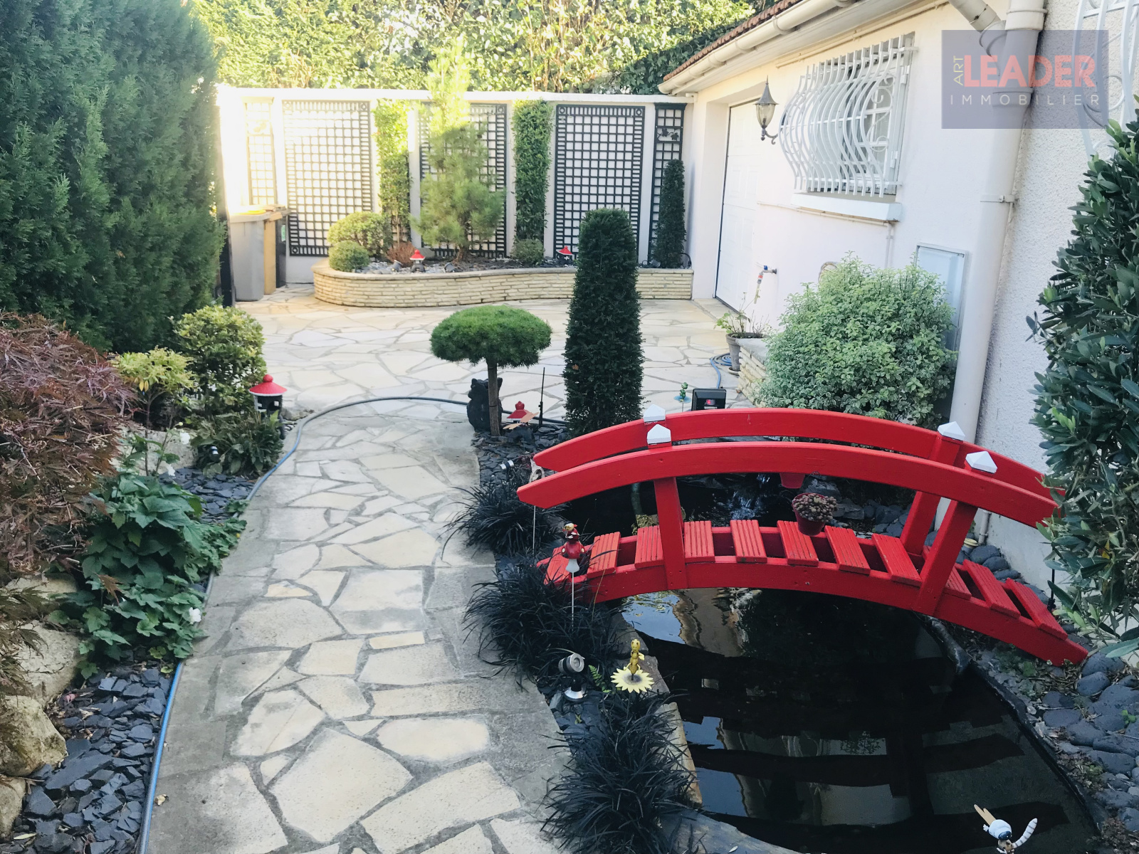 Jardin paysagé avec terrasse. Garage.