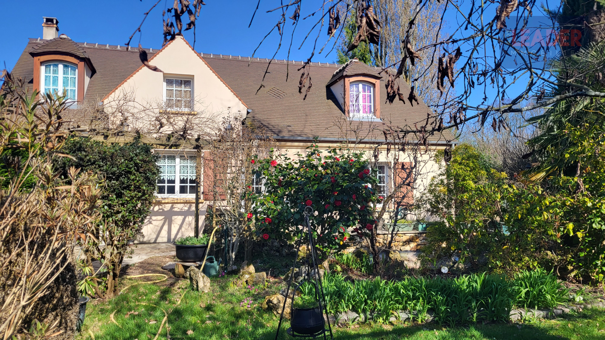 A l'abri des regards, dans un écrin de verdure, très beau pavillon de 6 pièces composé d'une entrée avec placards, cuisine équipée, double séjour avec cheminée, une chambre, salle d'eau avec WC. A l'étage, un grand palier, deux chambres, une salle de bains avec WC. Véranda